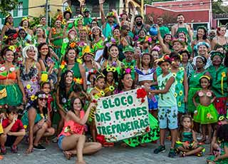 Bloco das Flores é um bloco tradicional de Itacaré, totalmente gratuito e sem fins lucrativos. Sai na segunda-feira, 16/02, com concentração no Bar do Raul (orla) a partir das 15h levando muitas cores, flores e alegria para o Carnaval de Itacaré! Vá de verde!