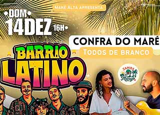 Domingo, dia 14 de dezembro, você tem um encontro na Confra do Maré, e já sabem a única regra: todos de branco! É para reunir os amigos, dar risada, dançar, comemorar o ano de 2025 e festejar 2026 que tá logo ali! Cheguem cedo pois a programação começa às 16h, então adianta aquela praia de domingo, volta cedinho e vai curtir o fim de tarde com esse line-up que tá incrível!Maré Alta - Orla - 16h