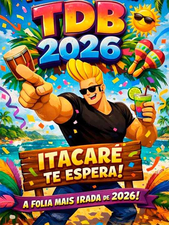Prepare-se para uma explosão de alegria, emoção e muita gente bonita no carnaval com o Bloco TDB! Com uma energia inesgotável e diversão completa assim como todos os anos. Fechando oficialmente o carnaval, saindo na Orla terça-feira, 17/02 a partir das 18h.