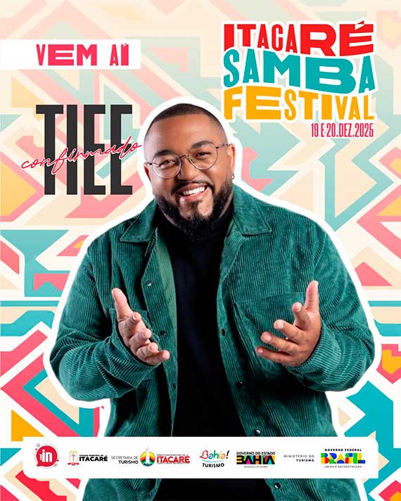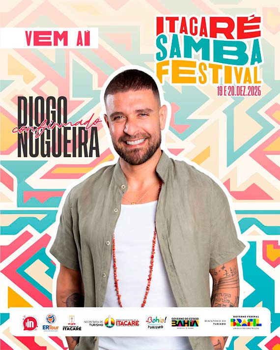 Salve o samba, salve Itacaré! Nos dias 19 e 20 de dezembro, a cidade vai vibrar no ritmo da alegria com o Itacaré Samba Festival! Prepare o coração, o gingado e venha celebrar a nossa cultura, nossas raízes e o som que embala gerações. As atrações já confirmadas são Diogo Nogueira e Tiee!!! Reserve essa data!