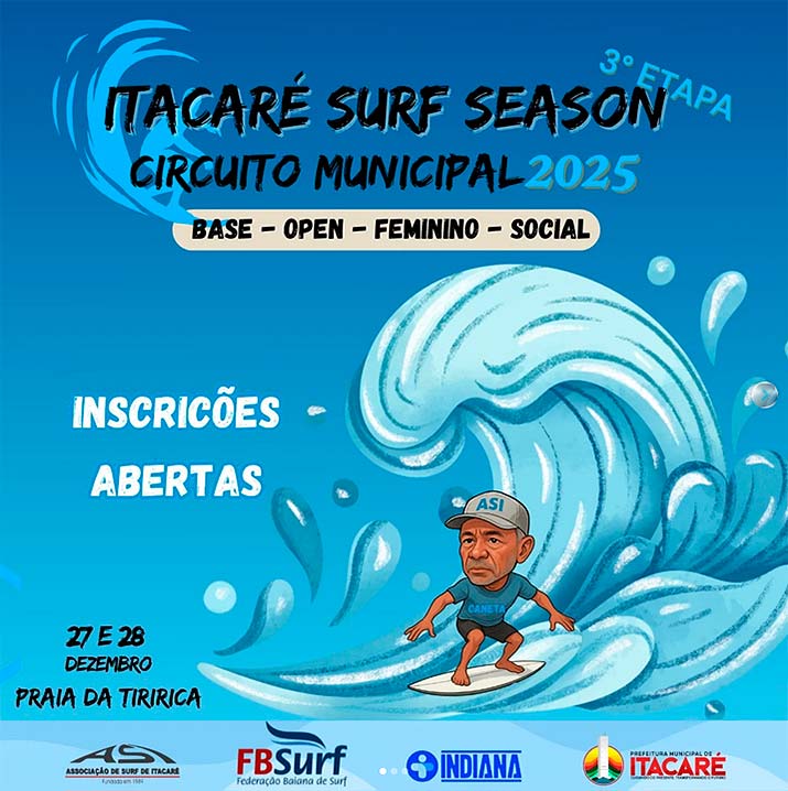 Abertura oficial da última etapa do Campeonato Municipal de Surf de Itacaré – Itacaré Surf Season, chegando com tudo para fechar o circuito em grande estilo! A etapa será marcada por um momento muito especial: homenagem ao Caneta, primeiro surfista de Itacaré e primeiro presidente da Associação de Surf de Itacaré, um dos grandes responsáveis pela evolução e fortalecimento do surf na cidade.