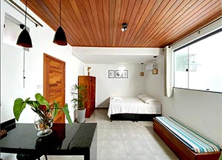 Localizado na principal rua de Itacaré possui um Studio mobiliado com cozinha completa, ar-condicionado, ventilador de teto, e varanda com rede. Acomoda até 3 pessoas. Outra opção é um Loft mezzanino com ar-condicionado, cozinha equipada. Acomoda até 4 pessoas.Rua Pedro Longo 204 - Pituba