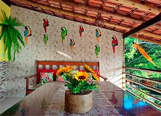 Localizada a 5 min da praça de Serra Grande, no centro da Vila, a Casa Bananga possui 2 acomodações que podem ser alugadas juntas ou separadas: um pequeno chalé, ideal para casais com até 2 crianças e uma vista maravilhosa do por do Sol na Mata. E a Casa das Bananeiras, ideal para grandes famílias, acolhendo até 8 pessoas. Toda mobiliada, com ampla cozinha bem equipada, sala de TV e lavanderia.Rua das Aroeiras - Vila alta - Serra Grande