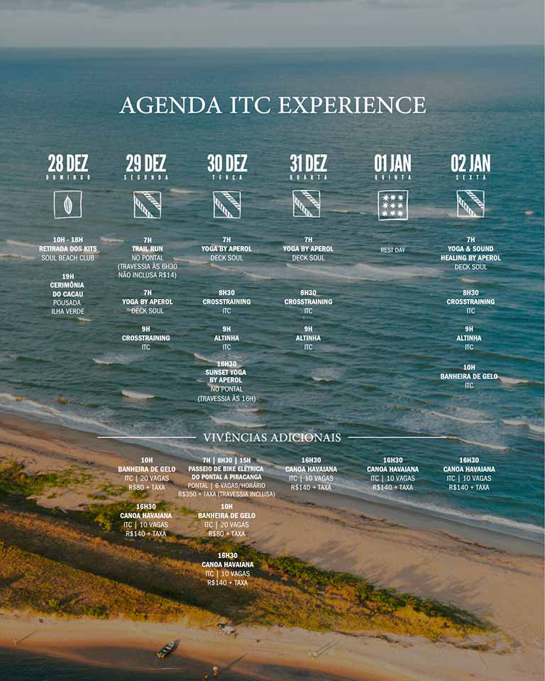 Um novo Réveillon se apresenta no sul da Bahia. Entre o rio e o mar, abraçado pela Mata Atlântica, a chegada de barquinho, inclusa no ingresso, se transforma em um ritual Nada é Igual. São 6 dias de experiências completas: Dia: beach club, esportes e uma programação completa de bem-estar. Noite: festas open bar, bandas, DJs e encontros que só acontecem aqui. Compre através do link!