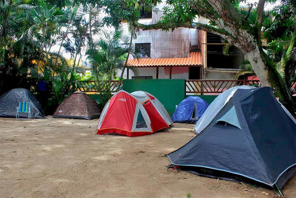 Área verde com sombra de várias árvores. Cozinha equipada, banheiro unissex, duchas externas e ponto de luz. Estacionamento próprio. Acesso Wi-Fi.